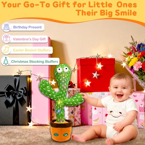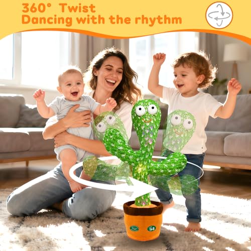 Specification: 👶🧸Dancing Talking Cactus Toy – Mimicking Light-Up Toy with Singing, Recording & Volume Control | Funny Gift for Toddlers Ages 1–3, Baby Interactive Toy for 6–18 Months
